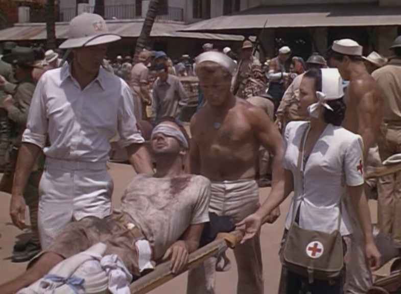 The United States has been plunged into World War II! Gary Cooper is Dr. Corydon Wassell, a simple doctor from Arkansas, who had in the past worked in China (which is shown in the first half of the film as a series of flashback that details his love affair with the lovley Loraine Day). He now finds himself in 1942 a doctor in the US Navy charged with caring for a dozen badly wounded American soldiers on the island of Java. Suddenly it's clear the Japanese are going to overrun the Island and Wassell is placed in charge of evacuating the wounded! But he is shocked to learn that stretcher cases must be left behind to fend for themselves. The wounded men are full of high spirits and hi-jinks but 60,000 Japs have landed nearby and none of the wounded have any chance to escape. Ignoring his orders to abandon his patients, Wassell launches a desperate plan to care for them with little-to-no resources while also leading them through a perilous route where dangers from the jungle and Japanese attack are both ever-present, all in the thin hope they can be evacuated by boat on the other side of the island! |