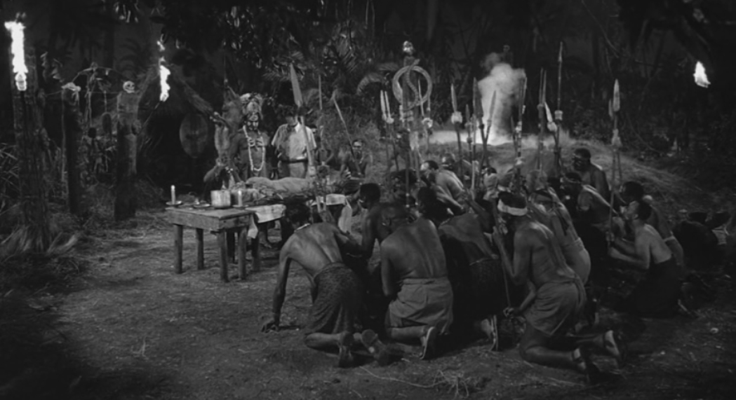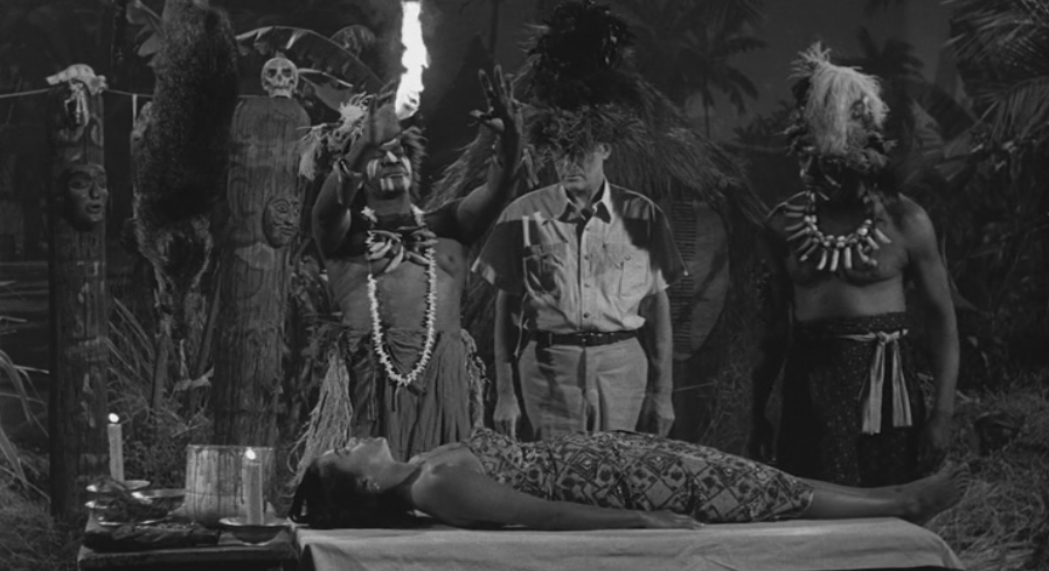 Mad Scientist Dr. Roland (Tom Conway) hides himself away deep in the jungle, using the native's voodoo magic for his experiments to create an indestructible being to serve his will. One unsuccessful attempt producses a hideous looking female monstrosity who will not kill for him because he used a woman of high moral standing as his subject. He needs a woman of fewer scruples, and it is only a party of gold seekers accidentally stumble upon his operation that he finds the woman he's looking for - the murderous leader of the band of gold seekers Marilyn Blanchard (Marla English)! |
