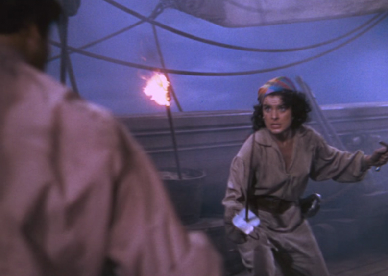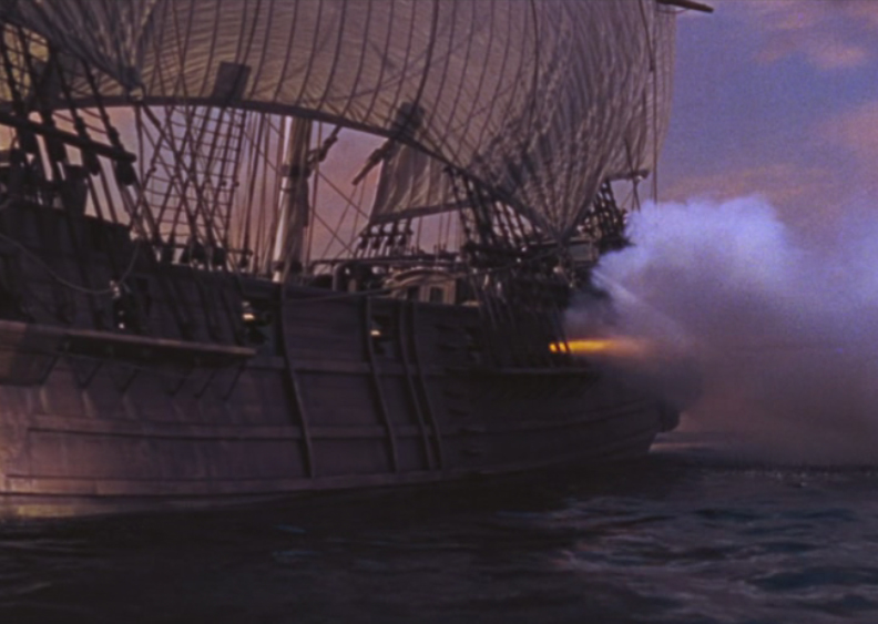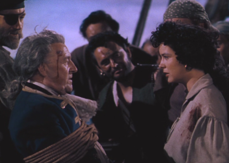 The Caribbean sea is a bustling trade route for ships flying all flags - including those who fly the Jolly Roger! Such is the case with the dreaded ship the Sheba Queen, commanded by the mysterious Captain Providence, and is the scourge of the seas. One day as yet another ship is conquered by the Sheba Queen, a prisoner is discovered aboard the beaten ship. He is Pierre LaRochelle (Louis Jourdan) who claims he's a captive and enemy of the British, and so he meets with Captain Providence (Jean Peters) and is shocked to discover the dreaded pirate is a woman! Providence takes a liking to LaRochelle and allows him to join her crew, against the better judgment of her mates. Even Blackbeard, who is Providence's fatherly friend, warns her he doesn't believe LaRochelle's story. Providence soon falls in love with the smooth-talking LaRochelle and he promises a future together in Paris to be funded by a fabulous treasure for which he has a map. However, when Providence allows LaRochelle to go ashore, he is secretly followed by some of her crew who do not trust him. They learn that LaRochelle is a spy, and he aims to deliver the Sheba Queen to the British, and even worse, he is married (to the beautiful Debra Paget)! Accepting the crushing realization she's fallen into a trap, Providence quickly escapes and is hellbent on revenge. She kidnaps LaRochelle's wife and sets out to sell Mrs LaRochelle on the slave-market! Pierre, desperate to save his wife, accepts a letter of marque as a British privateer and sets sail to after the Sheba Queen... |