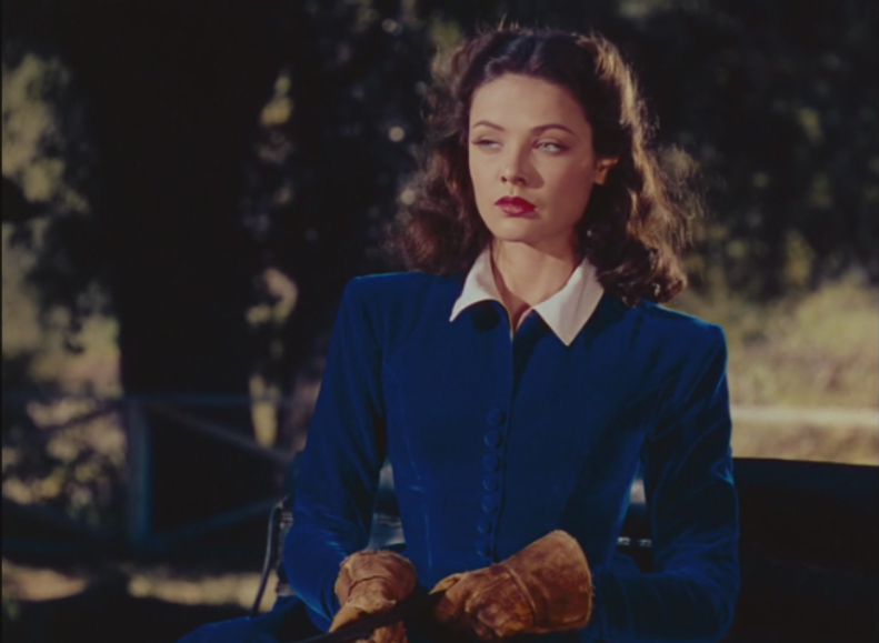 This classy film concerns the real life well-known heroine and her romance with Confederate Sam Starr/Randolph Scott. This is a highly romanticized retelling with thrills, feats, shootouts, and little connection with history. The real life Belle Starr never lived in any sort of mansion, grand or otherwise, and was too busy stealing and low-living to have any truck with the South. She didn't even meet Sam Starr until long after the Civil War had ended. The actual Starr himself was a lowlife bandit, and when he was shot to death, Belle moved on and married Blue Duck. But don't let Hollywood's usual foray into fancy turn you off of this film - Gene Tierney is a vision so delightful, vivacious, and beautiful it's no wonder she was a top tier actress for the next ten years. This was only her third movie and her first starring vehicle, but her screen presence feels like she's a Hollywood veteran. Tierney is just fantastic as the vulnerable and embittered woman who has been on the receiving end of society's injustices. The starry trio are well accompanied by regular Western secondaries Chill Wills, Shepperd Strudwick as John Shepperd , Elizabeth Patterson and Louise Beavers. Being filmed in brilliant Technicolor in the "Jesse James" Country. The motion picture was well directed by Irving Cummings who was known for his musicals, but does an able job here putting on his boots & hat for a western.
