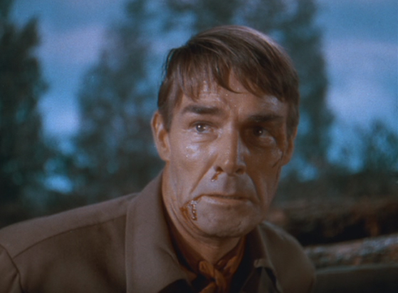 A stagecoach his held up by renegade Apache Indians led by a mysterious white man, and all except one of the passengers are killed. The lone survivor, a female, is taken as captive but rather than suffer the indignities inflicted upon her, she takes her own life. That woman was the fiancee of cowboy Chris Denning (Randolph Scott), and he sets off on a quest for vengeance that leads him to the small town of Coroner Creek. There he meets helpful innkeeper Kate Hardison (Marguerite Chapman) and learns the mysterious man's name is Younger Miles (George Macready). Miles, it turns out, is the dominant rancher in the area - doing whatever it takes to force rivals off their land and getting away with it because his father-in-law is the sheriff. Realizing the odds are stacked against him, Danning doesn't go gunning for Miles straightaway. Instead, he tries to provoke Miles into a confrontation by getting a job with his rival and letting the whole town know that he helped Miles' drunken wife (Barbara Read) get home. This backfires when a fight with Miles' goons (lead by Forrest Tucker) leaves his shooting hand badly broken and several hundred of his employer's cattle are killed by a fire started by Miles' men. Danning, now unable to pull a trigger, is still dead-set on getting his revenge but how will he do it? |